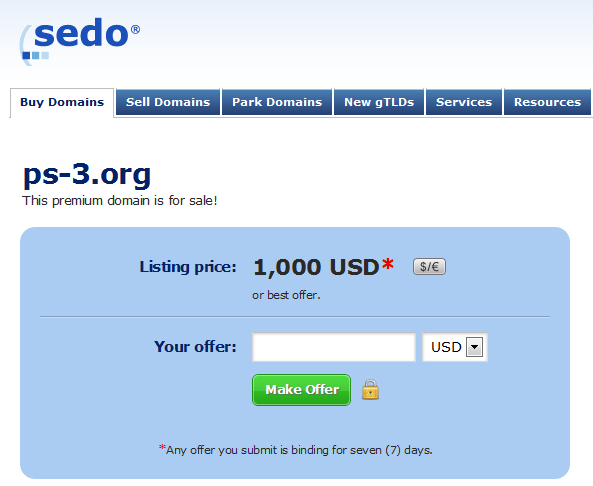 1. Well first off you'd need a website name. On the second-hand market a name like PS-3.net (one of the names currently available in our system) would cost you roughly $700-1000. Here's a screenshot of a similarly-valued name up for auction on Sedo.com (the world's biggest domain name auction place)…